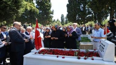 واستمع أردوغان خلال زيارته لتلاوة من الذكر الحكيم، كما قرأ الفاتحة على أرواح الشهداء، واضعا الزهور فوق قبورهم.
