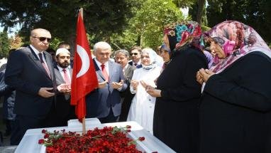 زار الرئيس التركي “رجب طيب أردوغان” برفقة رئيس الوزراء “بن علي يلدرم” مقبرة شهداء 15 تموز / يوليو، في أدرنة قابي بإسطنبول، وذلك بمناسبة الذكرى السنوية الأولى لمحاولة الانقلاب الفاشلة.