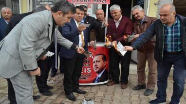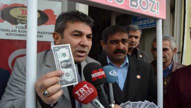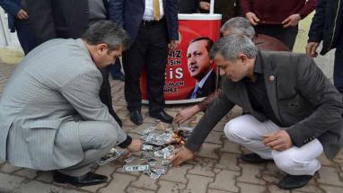 مجموعة من مسؤولي الأحياء في ولاية #أديمان يحرقون أوراقا من عملة الدولار احتجاجا على الهجمة التي تتعرض لها الليرة التركية أمام الدولار