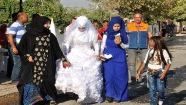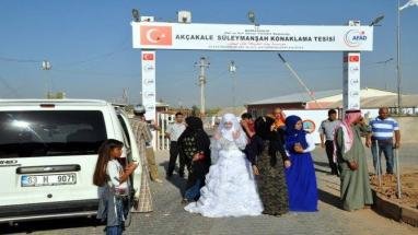 وقالت وسائل إعلام تركية، أمس الجمعة، إن العروس فاطمة الغفور، البالغة من العمر 19 عاماً، والتي لجأت إلى تركيا قبل ست سنوات، غادرت أمس مخيّم سليمان شاه بموكب لسيارات مسؤولي المنظمة، إلى مقاطعة أكتشاكاله في المدينة نفسها، حيث يسكن عريسها قتيبة العلي البالغ من العمر 22 عاماً.